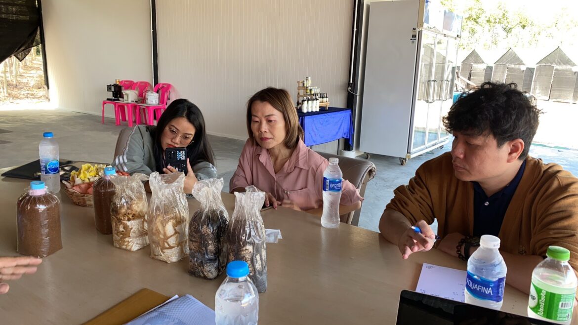 ในการเข้าเยี่ยมชม ฟาร์มเห็ดเบิกบลูม (เฮฟเว่นฟาร์ม 2 ) โดย วิสาหกิจชุมชนพัฒนาอาชีพจังหวัดชลบุรี เพื่อให้คำปรึกษาและแนะนำภายใต้โครงการ “กิจกรรมการพัฒนาต่อยอดผลิตภัณฑ์จากงานวิจัยเกษตรแปรรูปสู่เชิงพาณิชย์ ภายใต้โครงการ 3.2-1 การยกระดับสินค้าเกษตรสู่เกษตรอุตสาหกรรม” โดยศูนย์วิจัยและพัฒนาวัสดุอุตสาหกรรมสร้างสรรค์ และได้รับการสนับสนุนจากกรมส่งเสริมอุตสาหกรรม